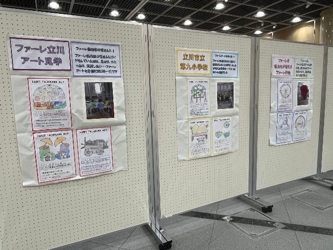 立川市立小学校で図工の授業の一環として実施している「小学校ファーレ立川アート鑑賞教室」。現地の見学後、事後学習として子どもたちが制作した作品などを展示します。